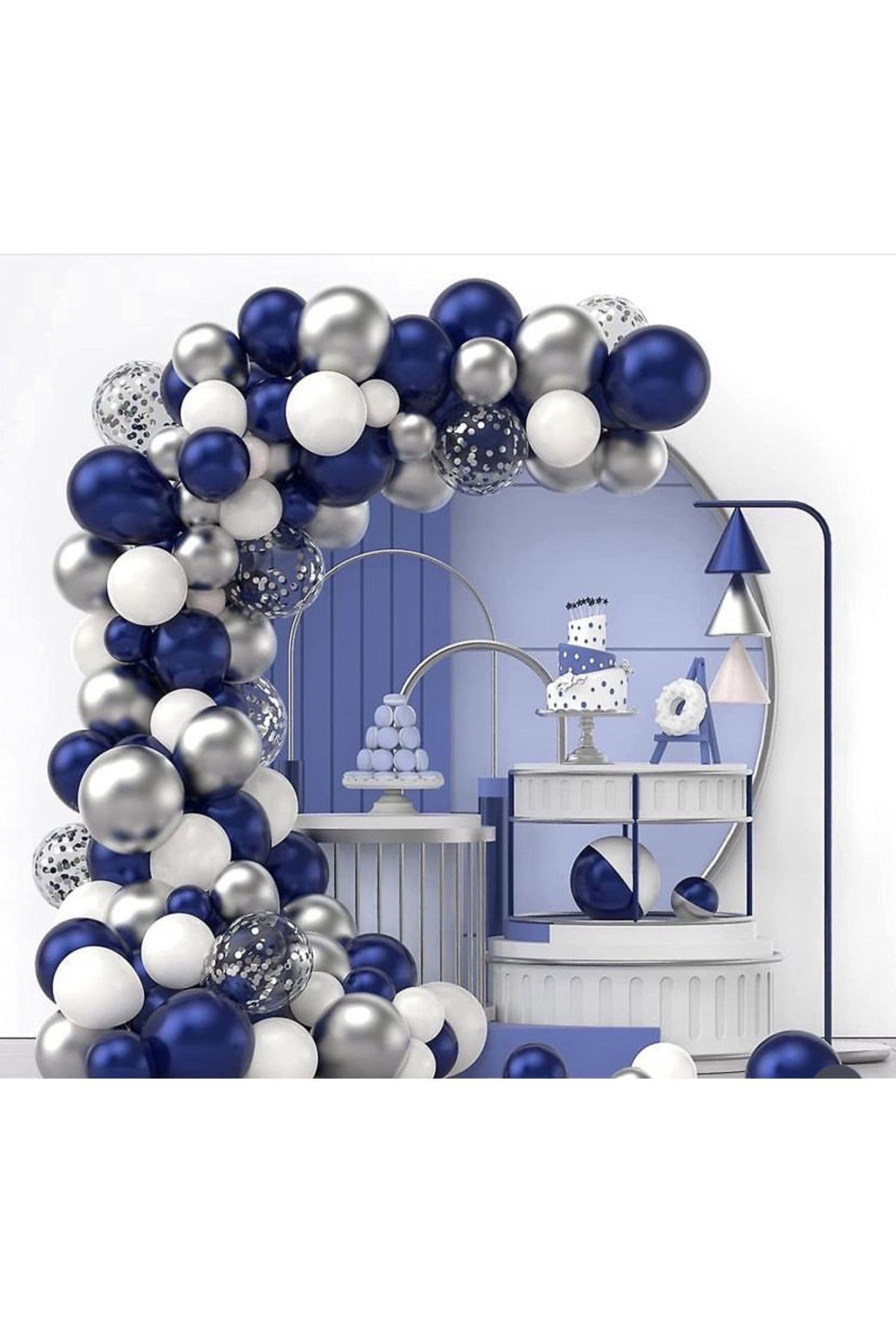 Gece Mavisi Beyaz Gümüş Krom Pullu Şeffaf Balon Zinciri Seti 100'lü
