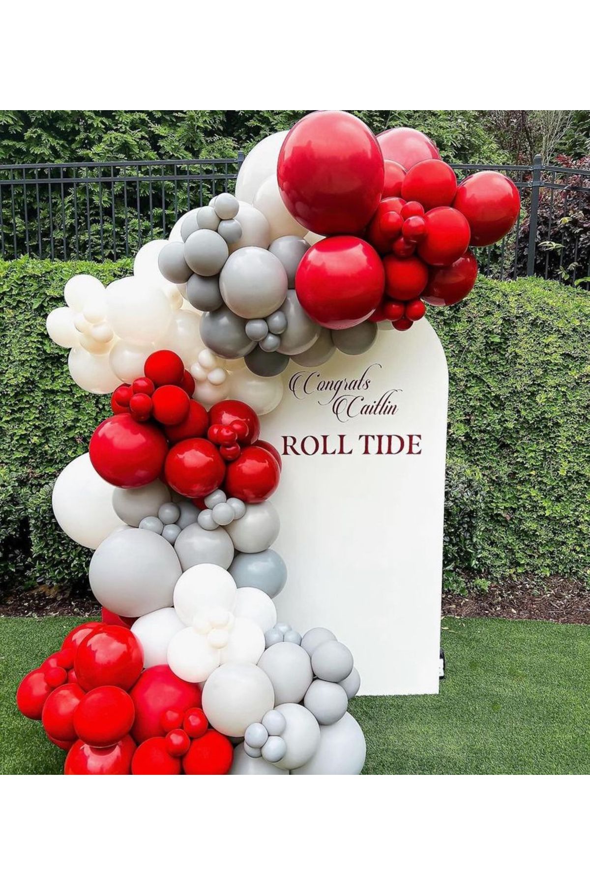 Koyu Kırmızı Deep Red Duman Gri Beyaz Balon Zinciri Seti 100'lü