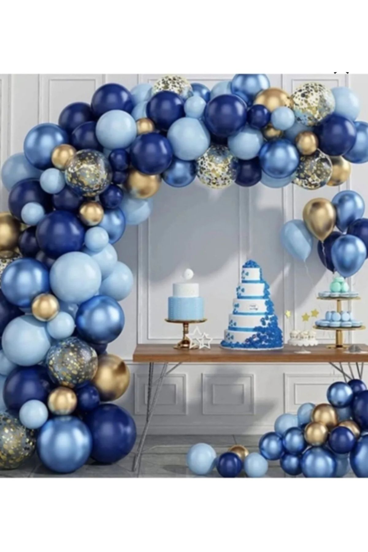 PAKET İÇERİĞİ ; 30 Makaron Pastel Mavi Balon ; 30 Metalik Lacivert ; 20 Metalik Gold Balon ; 10 Krom Mavi Balon ; 10 Şeffaf Balon ; 1 paket Gold Balon Pulu ; 5mt balon zinciri ;