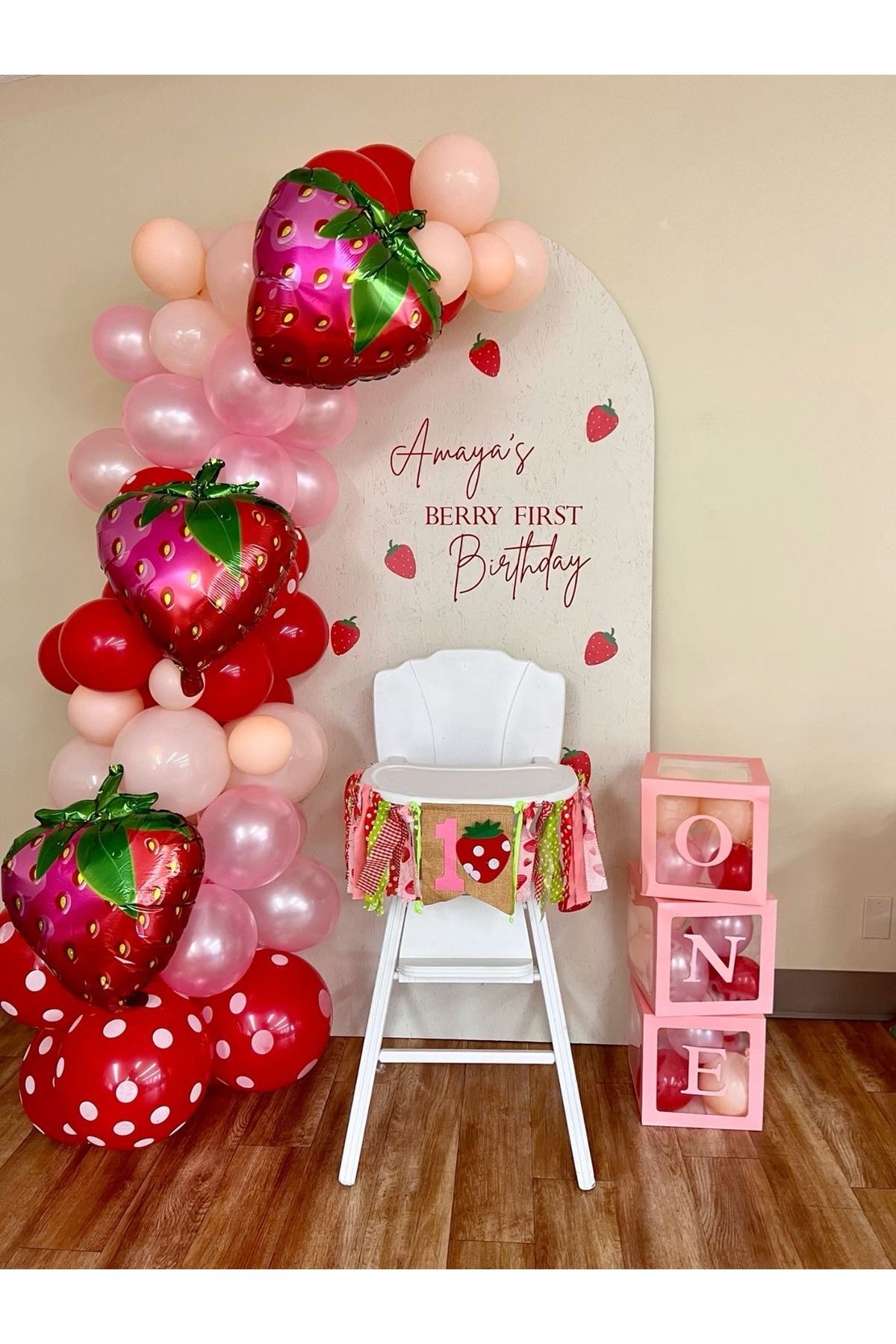 100 adet balon 5 ve 12 inç ebatlarında 1 adet zincir 5 mt Not; çilek şeklindeki balonlar sete dahil değildir