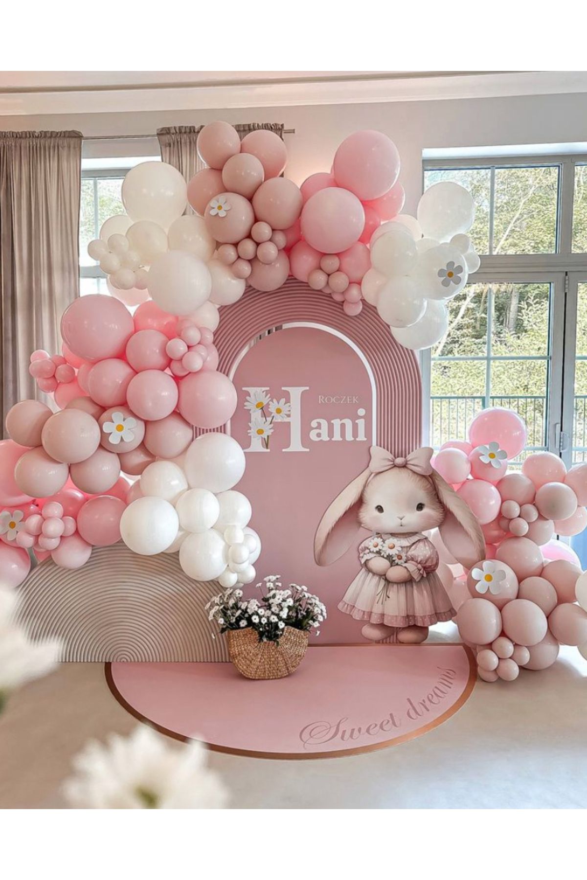Pudra Pembe Beyaz Balon Zinciri Seti 103'lü Jumbo Dahil