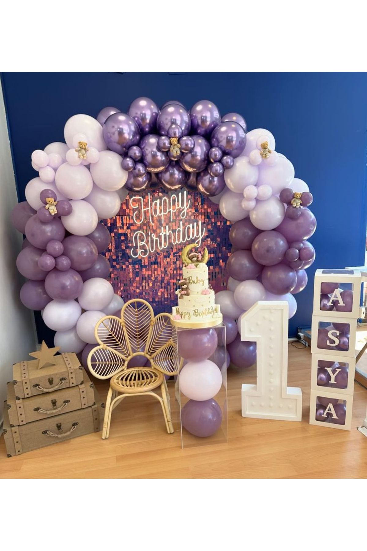 100 adet 5 ve 12 inç ebatlarında balon 1 adet zincir 5 mt