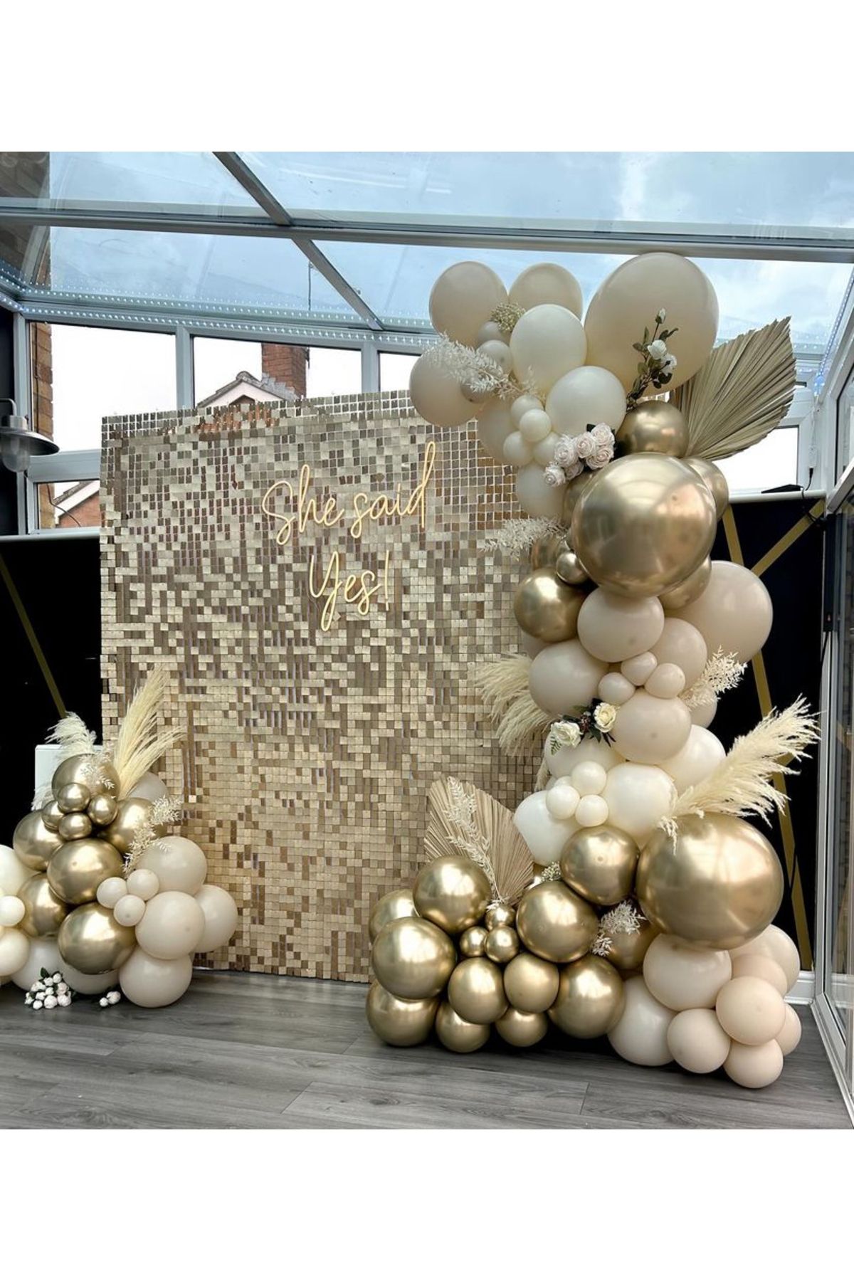 Retro White Gold Krom Balon Zinciri Seti 103'lü Jumbo Balon Dahil