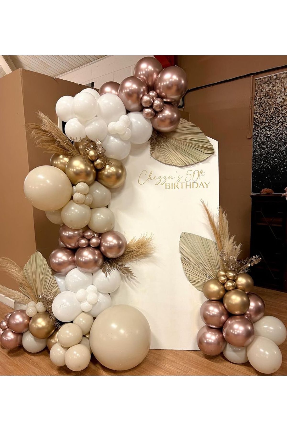 100 adet balon 5 ve 12 inç ebatlarında 1 adet zincir 5 mt