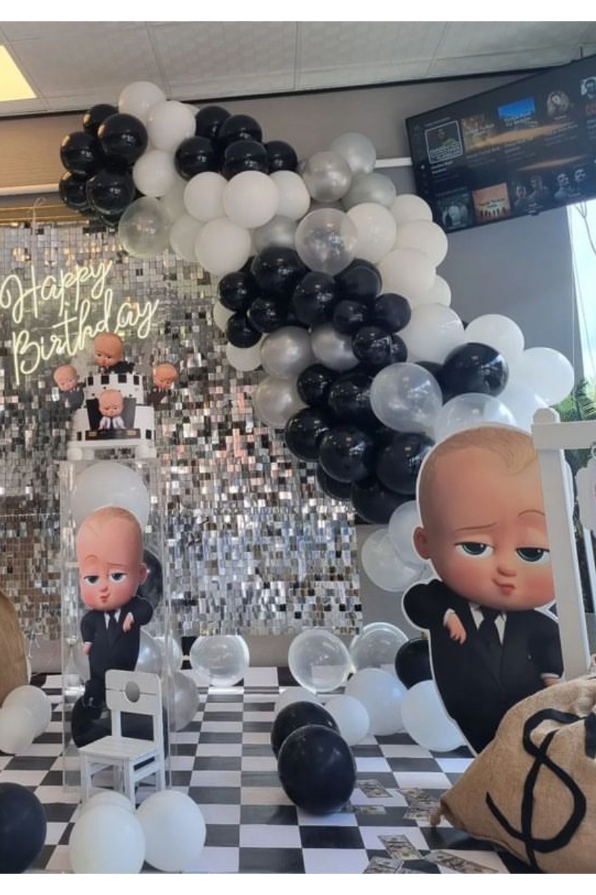 Siyah Beyaz Gümüş Krom Balon Zinciri Seti