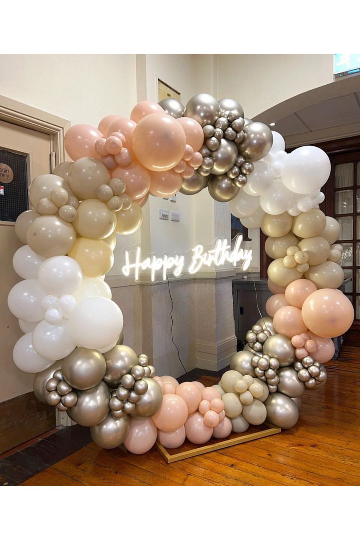 100 adet 5 ve 12 inç ebatlarında balon 1 adet zincir 5 mt