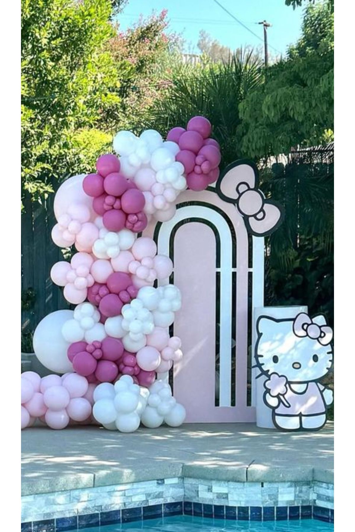 Yaban Çileği Pembe Beyaz Balon Zinciri Seti 103'lü jumbo dahil